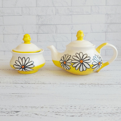 ست قوری و قندان دستساز سرامیکی طرح گل نارنگی سرام