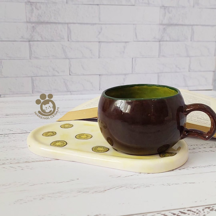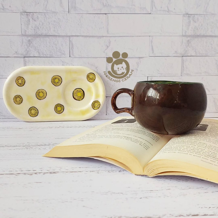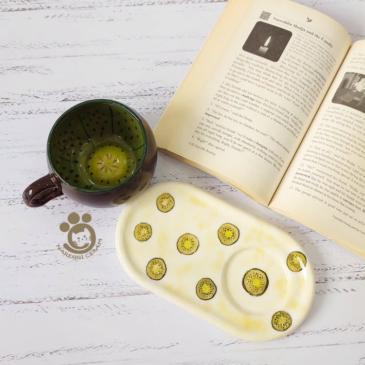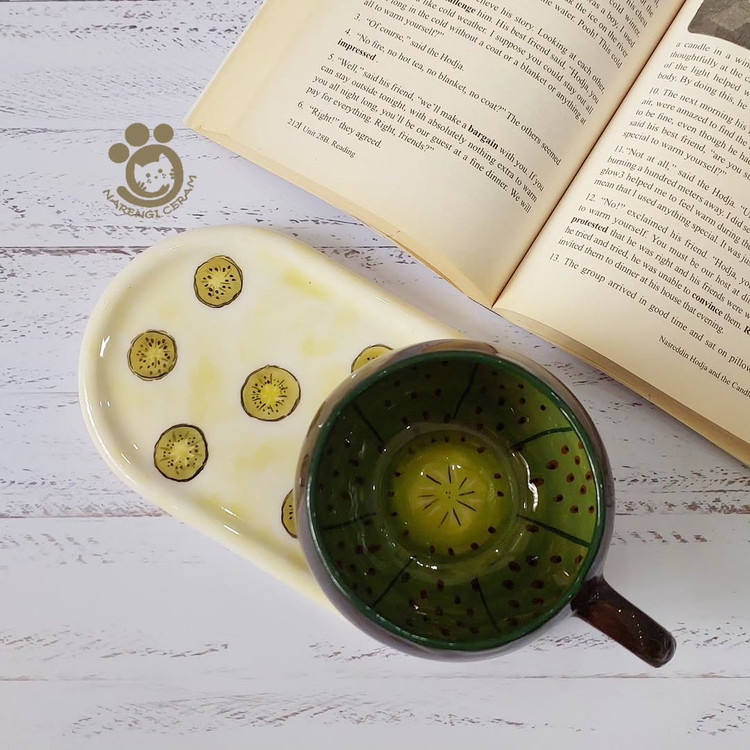 ست ماگ و زیر ماگی سرامیکی دست ساز طرح کیوی