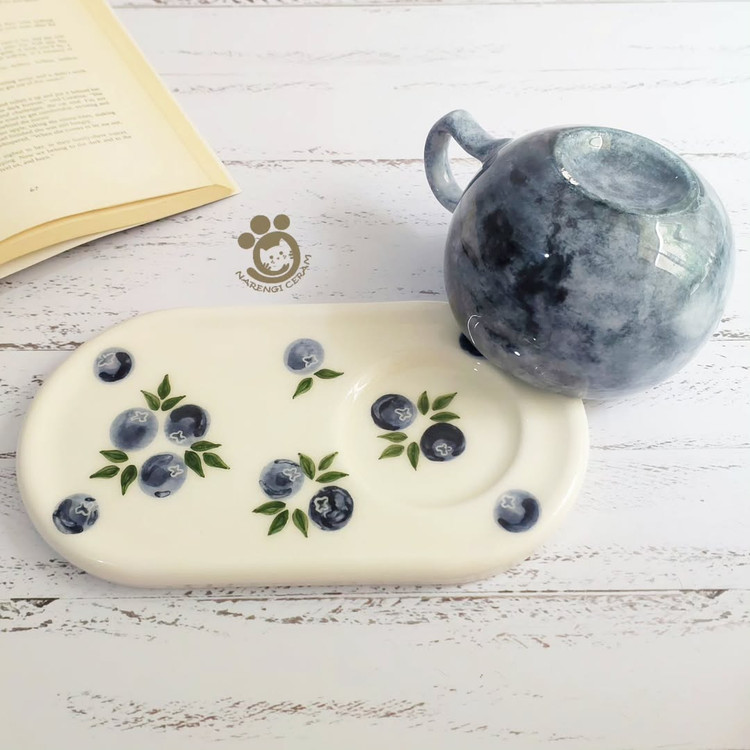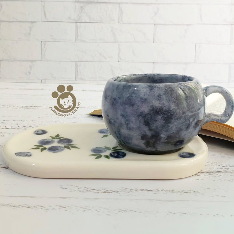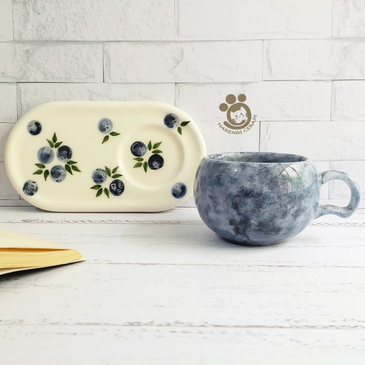 ست ماگ و زیر ماگی سرامیکی دست ساز طرح بلوبری