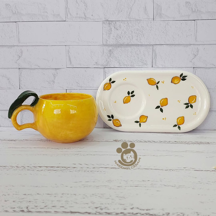 ست ماگ و زیرماگی سرامیکی دست ساز طرح لیمو