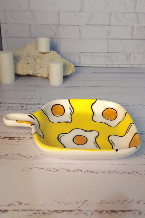 این ظرف مستطیلی دست ساز با طرح نیمرو ، میتونه میز صبحونه ات رو خاص تر از همیشه کنه.
