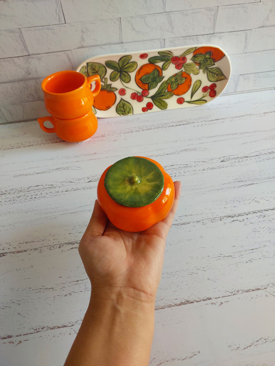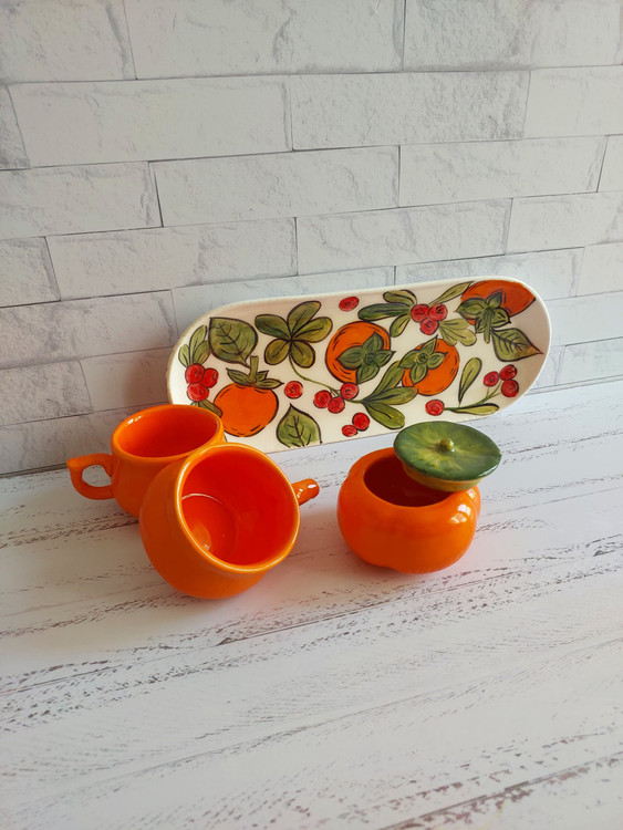 ست دو نفره ی سرامیکی دستساز مدل خرمالو ویژه یلدا