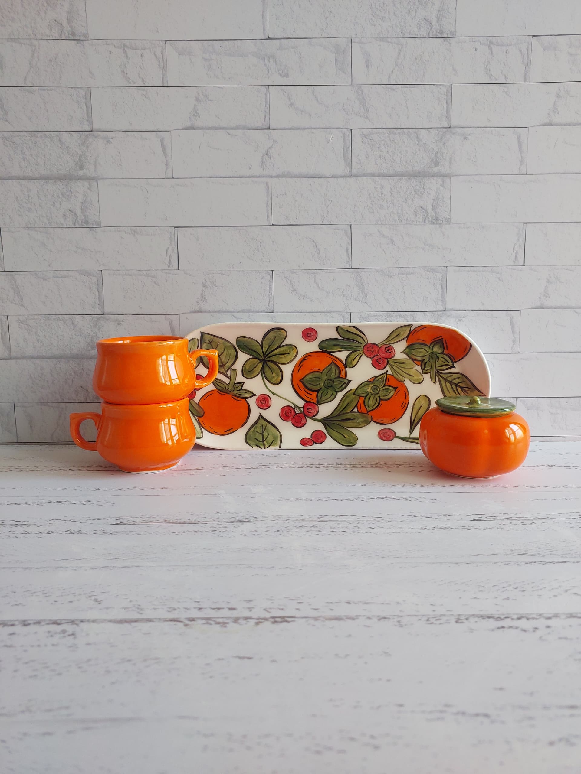 ست دو نفره ی سرامیکی دستساز مدل خرمالو ویژه یلدا