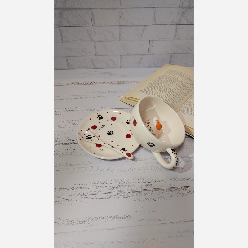 ی فنجون لته خوری با گربه داخل فنجون و زیر فنجونی و یک قاشق به عنوان هدیه از طرف نارنگی سرام برای شما دوست خوبم