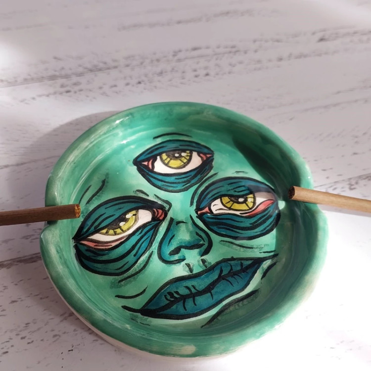زیرسیگاری سرامیکی دستساز مدل چشم 1 نارنگی سرام
