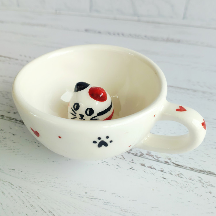 لته ماگ سرامیکی سورپرایزی دست ساز عروسکی داخل گربه
