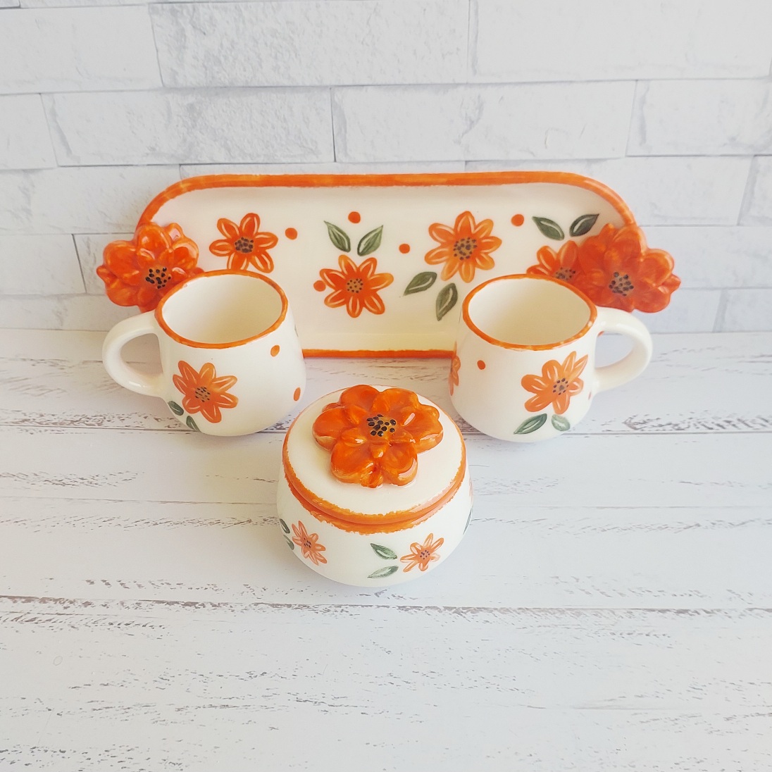 ست چای خوری سرامیکی دو نفره دست ساز طرح گل نارنجی
