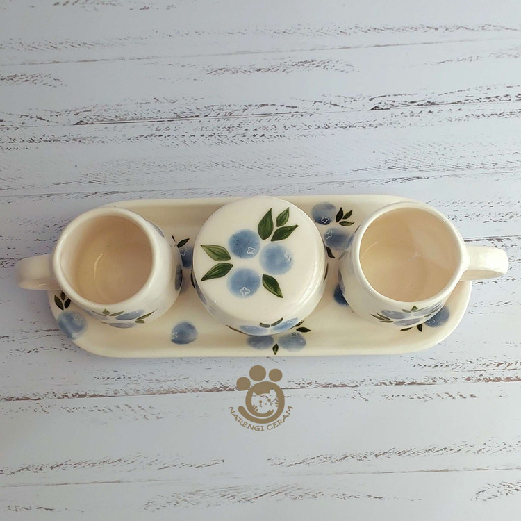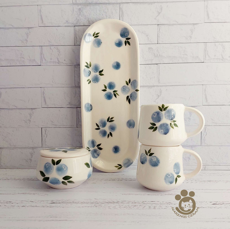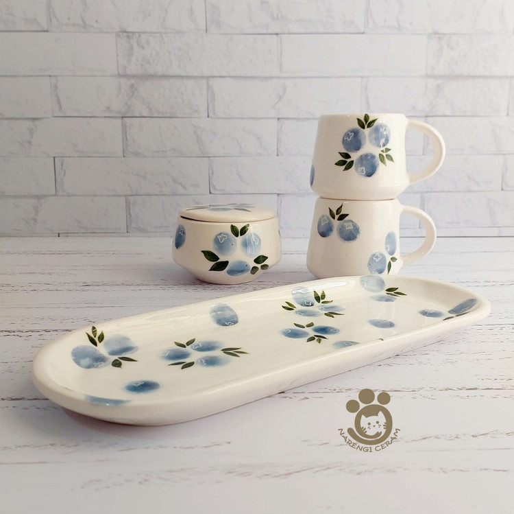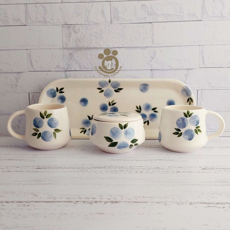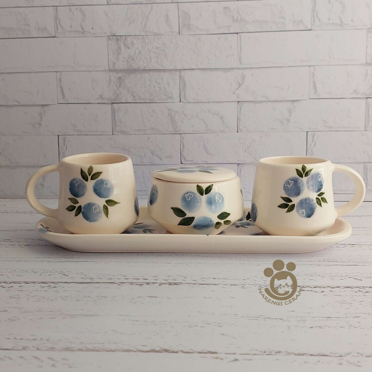 ست چای خوری سرامیکی دو نفره دست ساز طرح بلوبری
