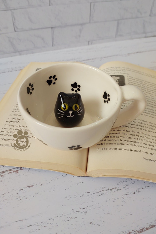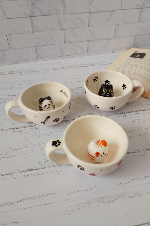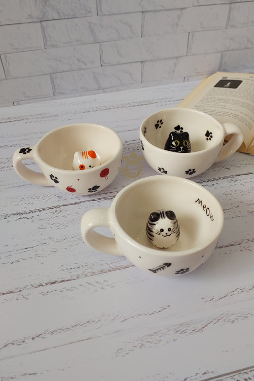 لته ماگ سرامیکی دست ساز عروسکی داخل گربه