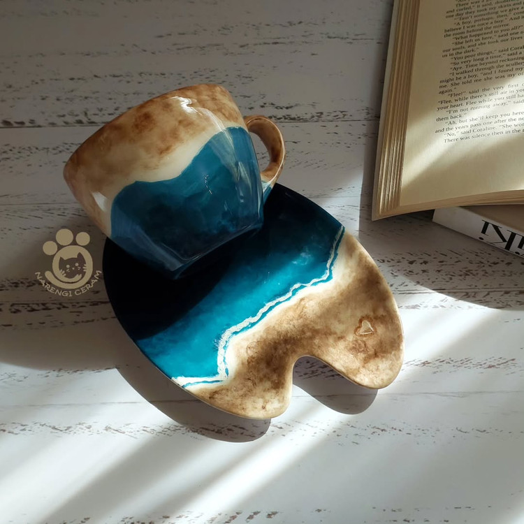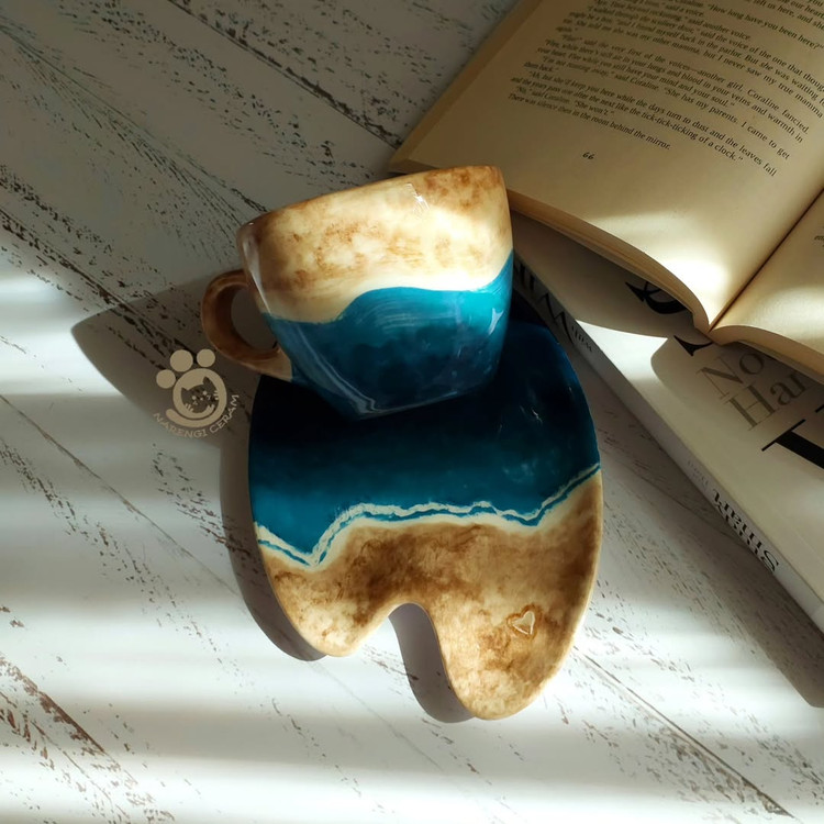 ست اسپرسو خوری سرامیکی دست ساز طرح ساحل