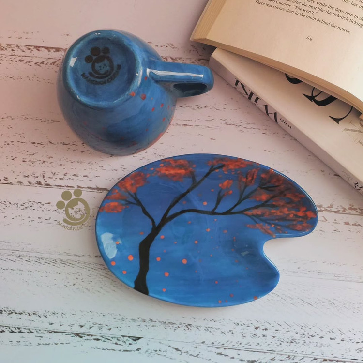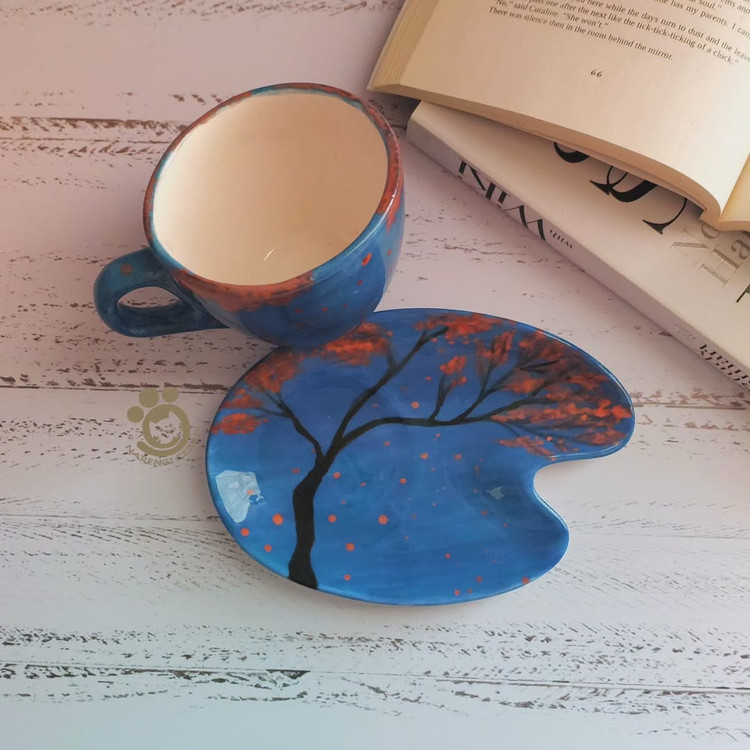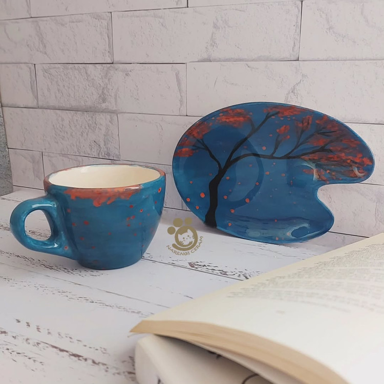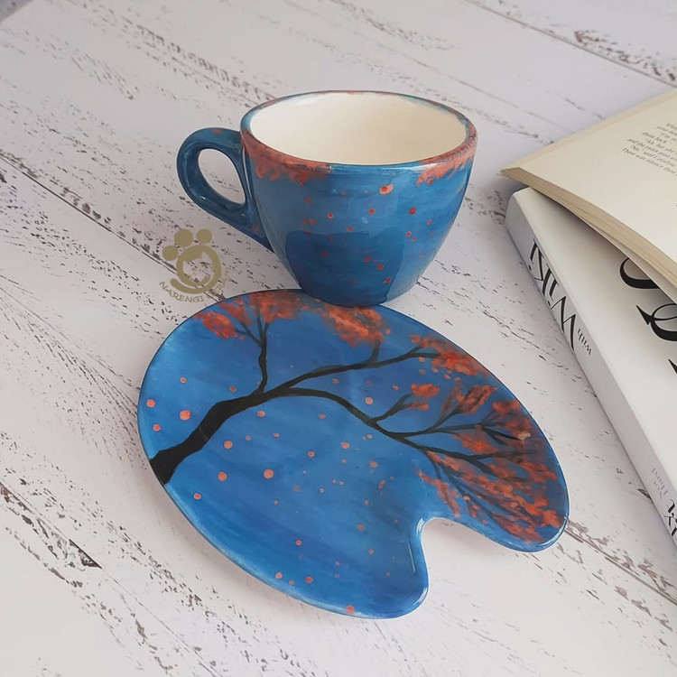 ست اسپرسو خوری سرامیکی دست ساز طرح شکوفه گیلاس