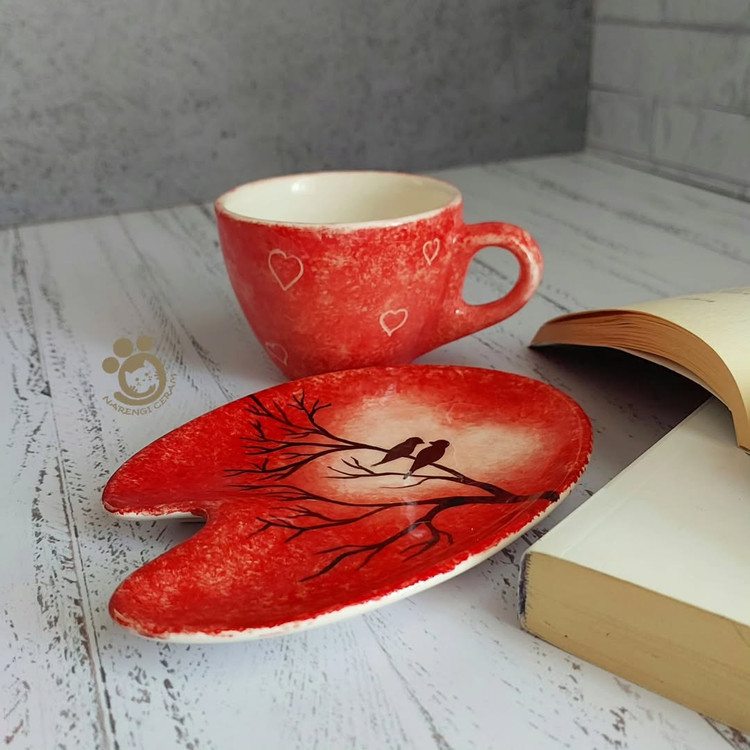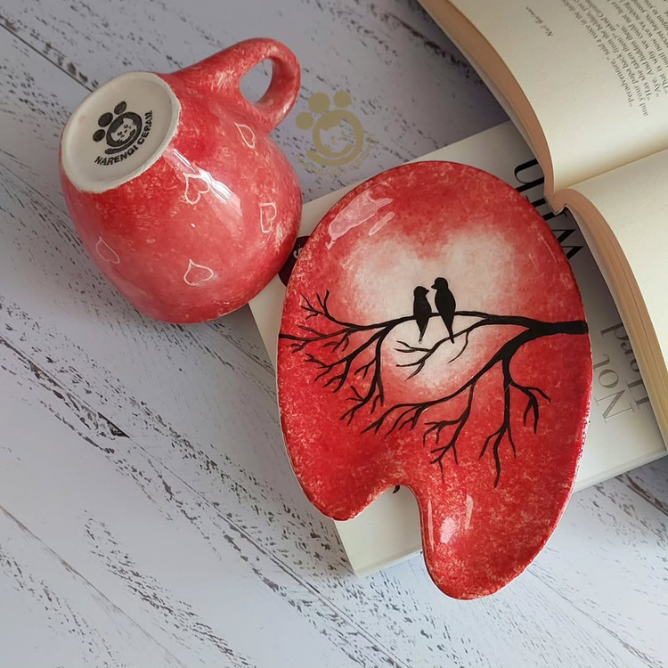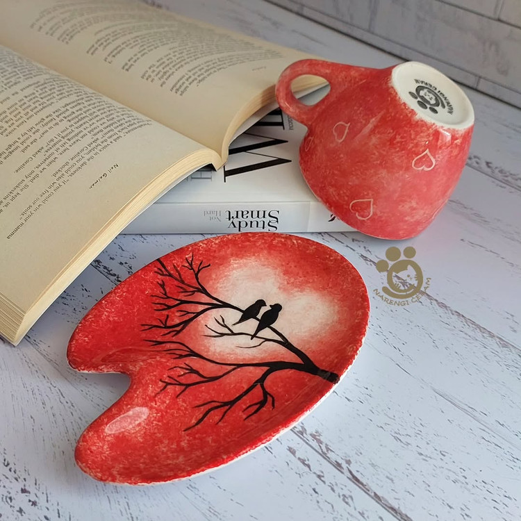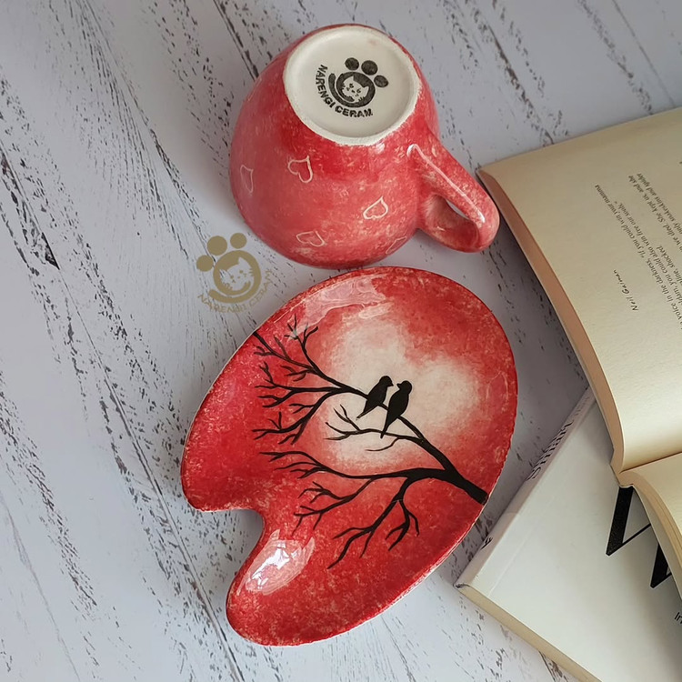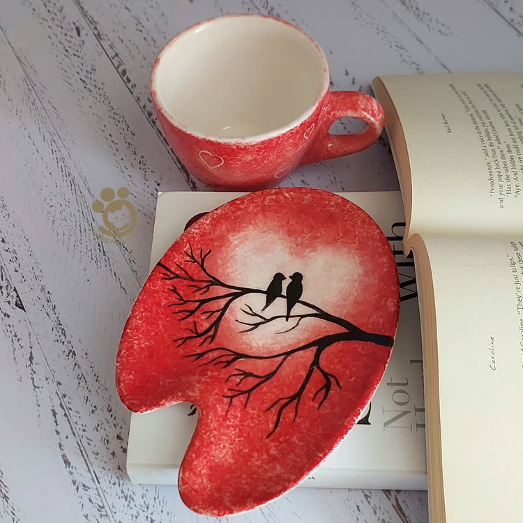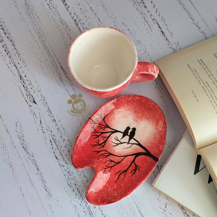 ست اسپرسو خوری سرامیکی دست ساز طرح پرنده عاشق